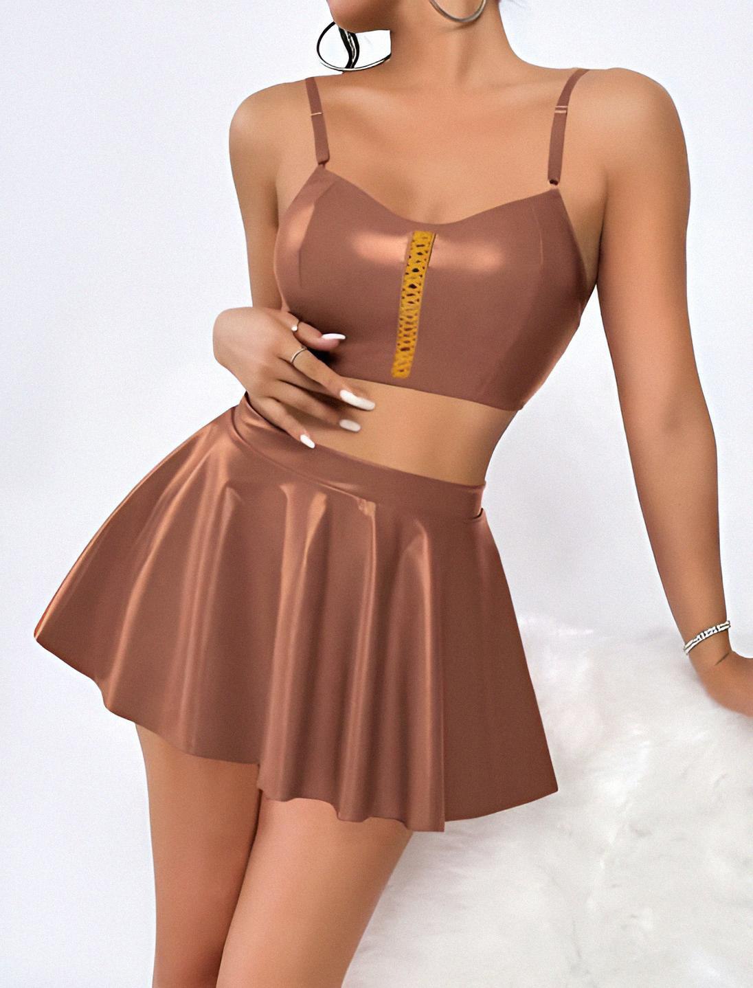Fantazi Deri Görünümlü Mini Elbise